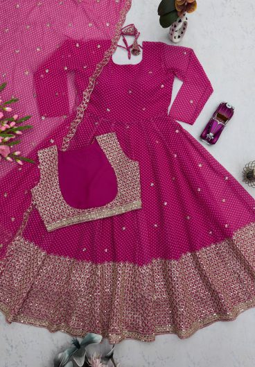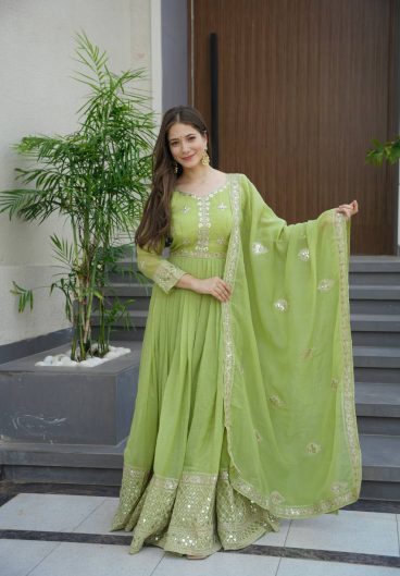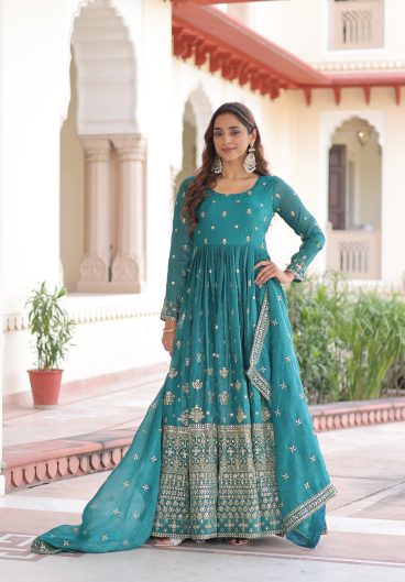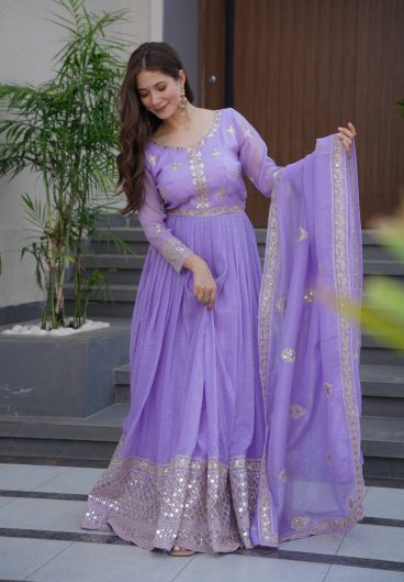 Fox Georgette with Heavy sequence Embroidery Work Gown Dupatta Set