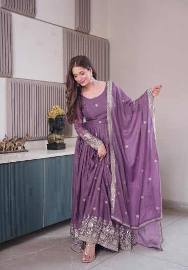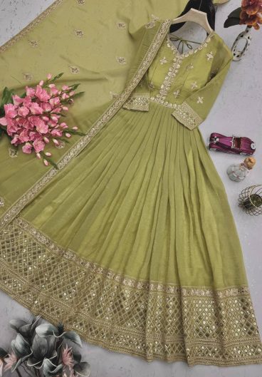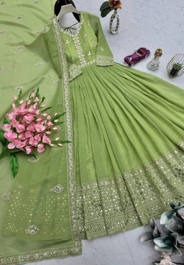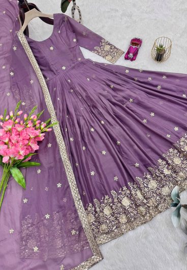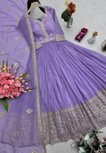 Vichitra Silk with Rich Sequins Embroidered work GOWN-WITH-DUPATTA