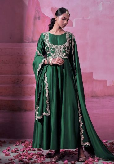 Heavy Crunchy Silk with Embroidery Codding & Sequins Work Stitched Gown & Dupatta Set