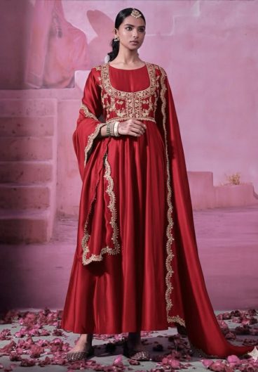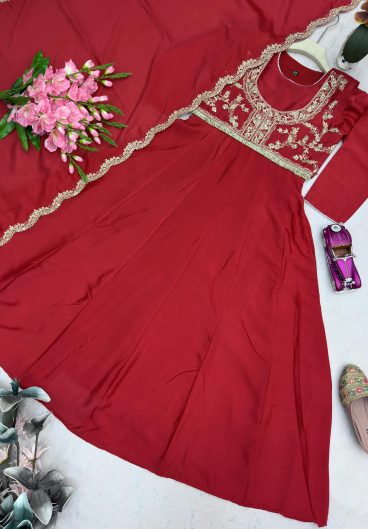 New Design Roman Simer Silk Gown & dupatta Reddy To Wear Look Design