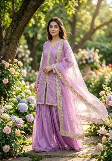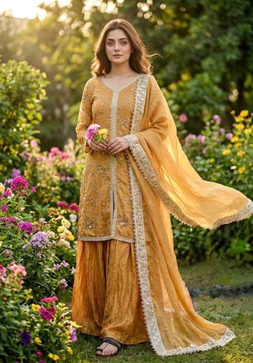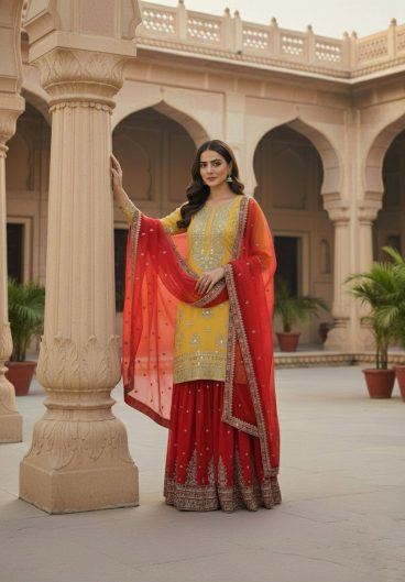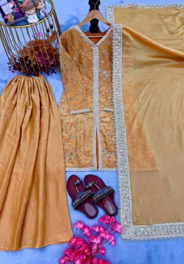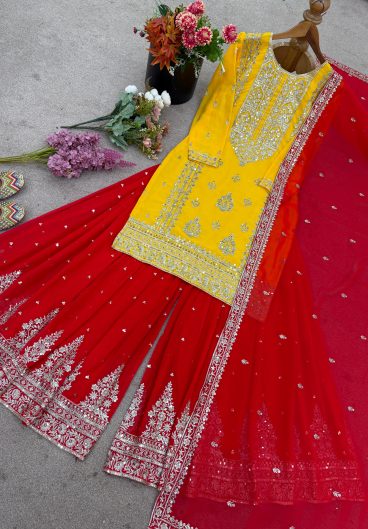 NEW TRENDING 3 PIECE FANCY KURTI WITH SHARARA AND BEAUTIFUL DUPATTA
