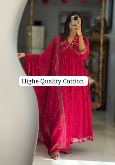Beautiful Suit Sets in Pure Cotton 60 60 Suit Set Top pent with dupatta with Fully Handwork Neck