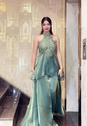 Heavy Fandy Silk with Heavy Bids Hand Work And Moti Work Top bottom set