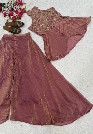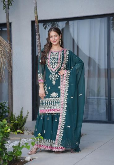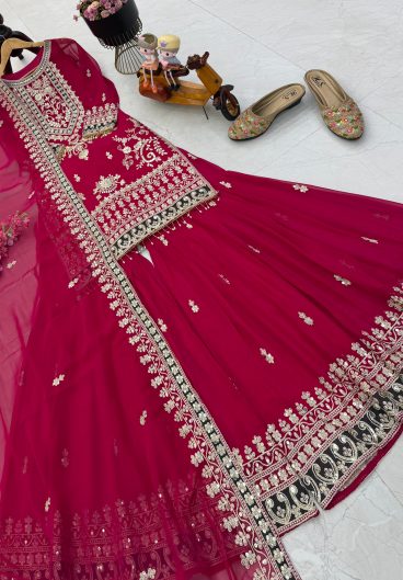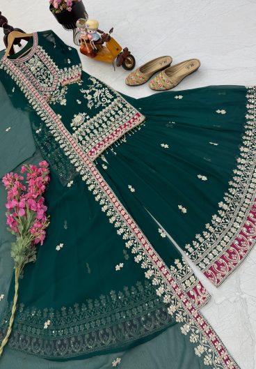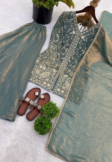 New Designer Party Wear Look Pur Heavy Faux Georgette Top Plazzo & Dupatta Set