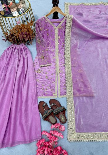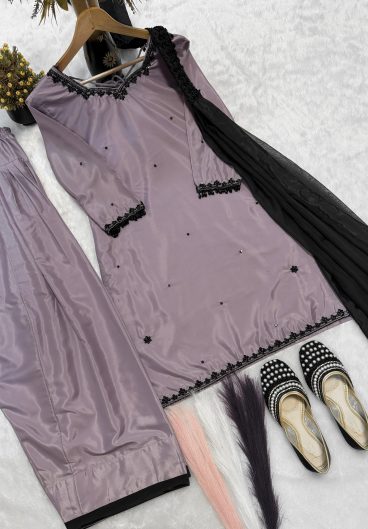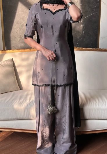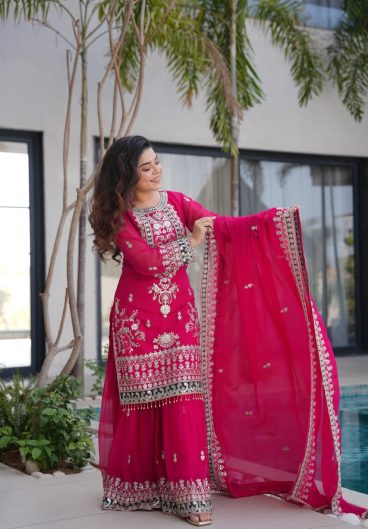 New Party Wear Look Pure Heavy Fendy Silk Top Plazzo & Dupatta Set