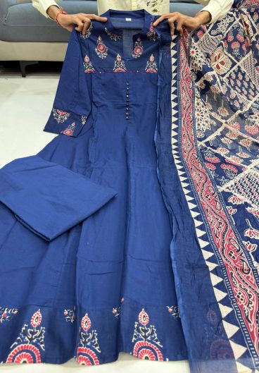ANARAKLI PURE JAIPURI AUTHYNTIC BLOCK COLOURS PENT WITH DUPPTA SET
