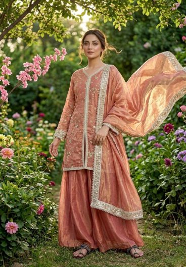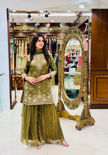 New Designer Party Wear Look Heavy Natural Crep Silk top with farshi salwar