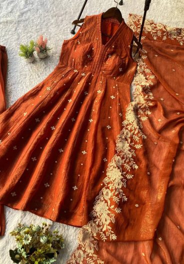 Ready To Wear New Design Trending Cinon Silk Gown Pent & dupatta Set