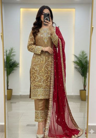 DESIGNER WEAR EMBROIDERED TOP PANT & DUPATTA