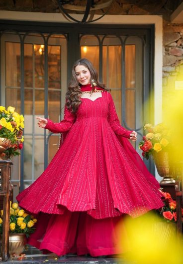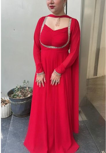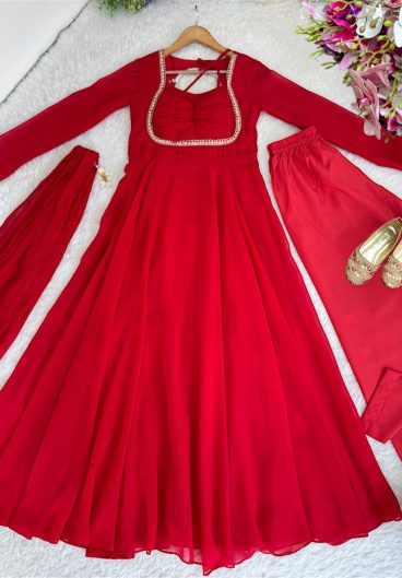 New Design Faux Georgette Gown & Pent & dupatta Reddy To Party Wear Look