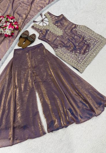 PARTY AND WEDDING OUR DESIGNER WEAR TOP WITH PLAZZO PAIR IN CORDING WITH SEQUENCE EMBROIDERY