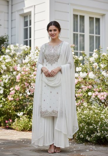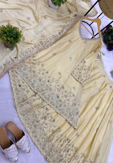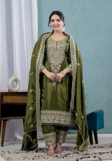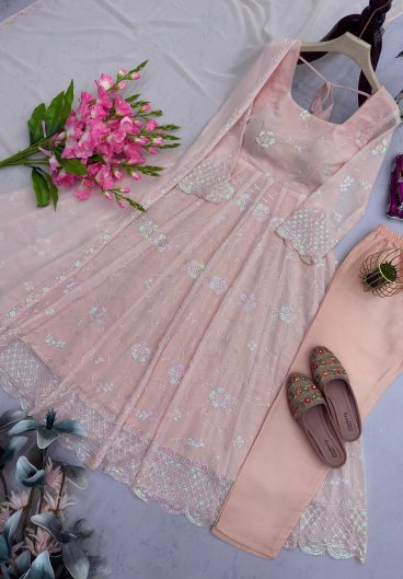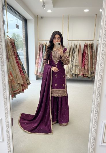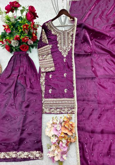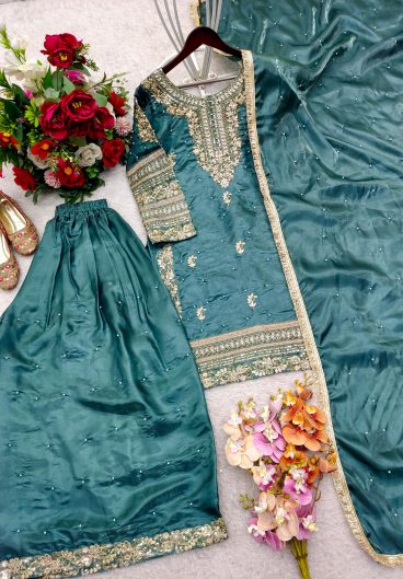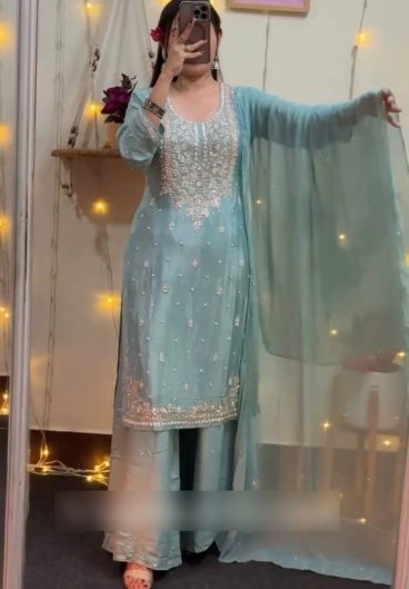 Pure Heavy Chinnon Silk With Heavy Embroidery Coding Sequence Work Salwar Kameez