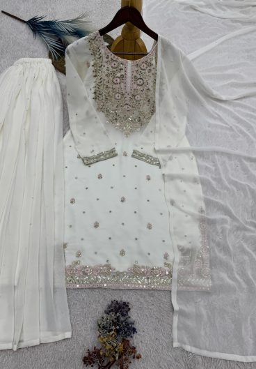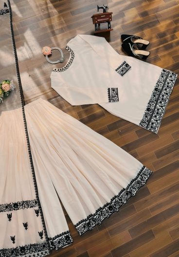 TRENDING FAUX GEORGETTE TOP COTTON THREAD EMBROIDERED WORK AND WORK PLAZO WITH DUPATTA