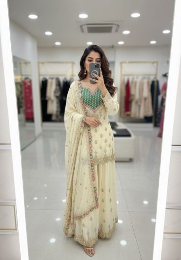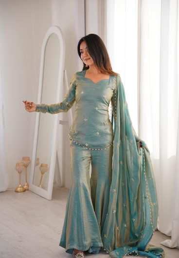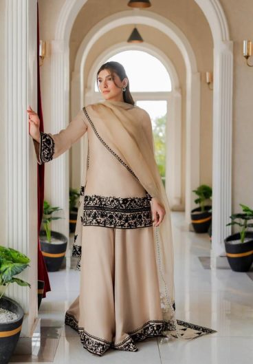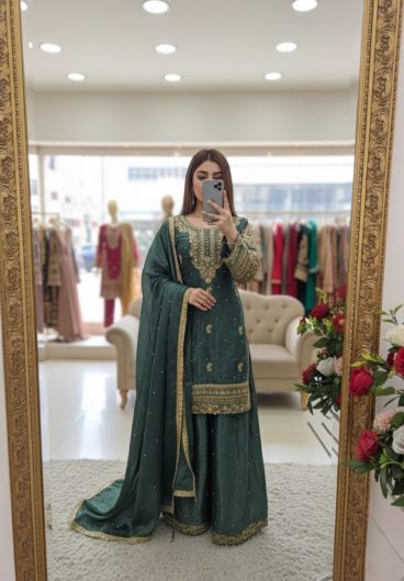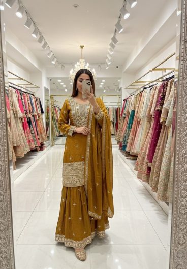 New Design Trending Fendy Silk Top Sarara & dupatta Ready To Wear