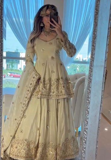 Premium Quality Butterfly Net with Embroidery Sequins Work Top Bottom Dupatta set