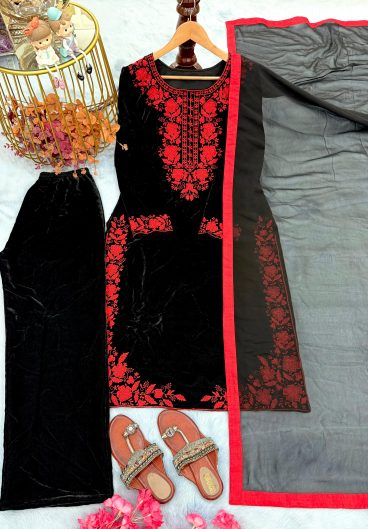 New Designer Party Wear Look Heavy Pure Viscose Velvet Top Plazzo & Dupatta Set