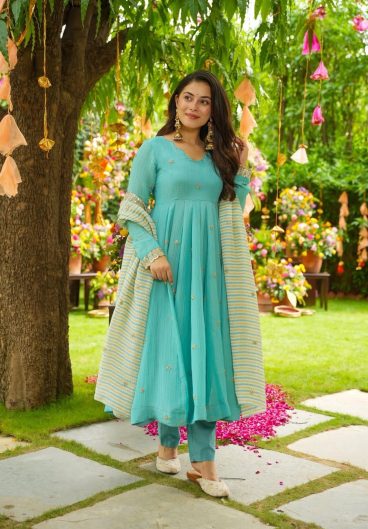 Heavy Chinon Silk with Thread with Sequence work Anarkali Set