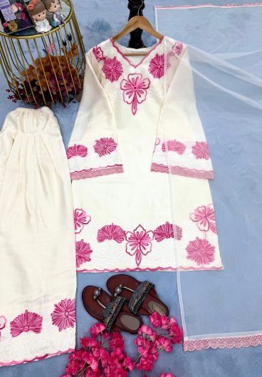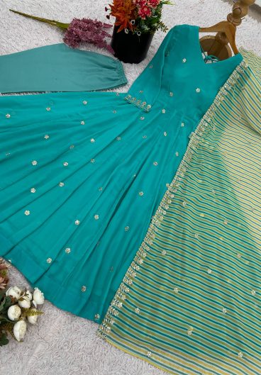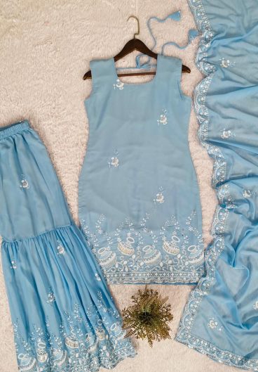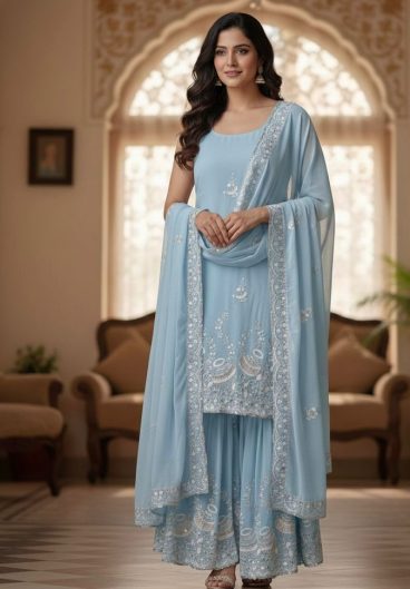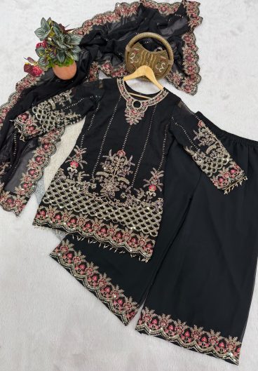 Pure Heavy Faux Georgette With Heavy Embroidery Coding Dori-Sequence Work Top-Bottom And Dupatta Set