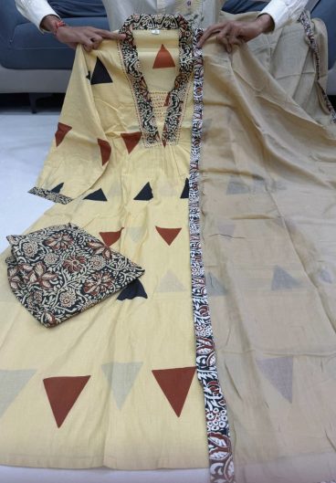 Beautiful Suit Set in Kalamkari Print Pure Cotton Suit Set Top pent with Beautiful Cotton dupatta