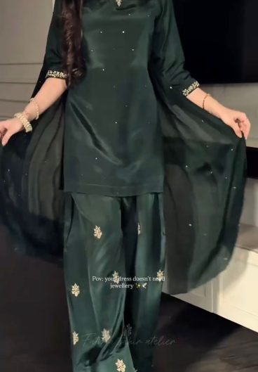 Simmer Silk Full sleeve Full stitched Top with Embroidery work with 5mm Sequence work Zari Work with moti work Set