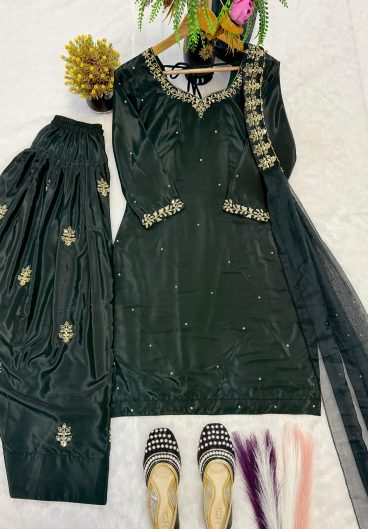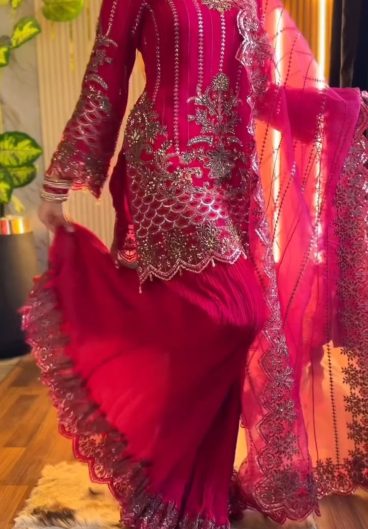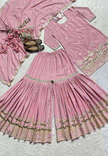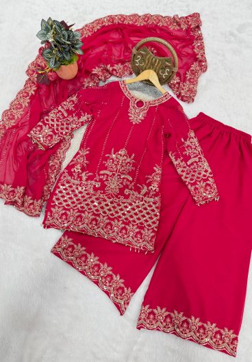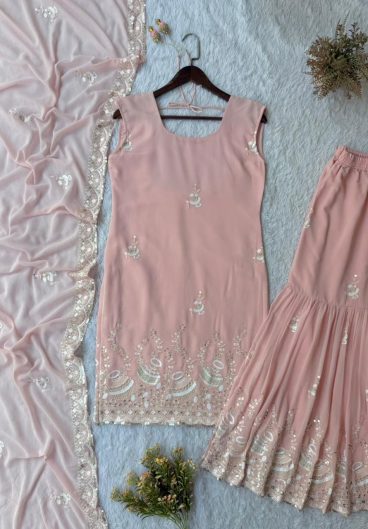 PARTY AND WEDDING SEASON 3 PIECE KURTI SARARA AND DUPATTA WITH SEQUENCE EMBROIDERY WORK