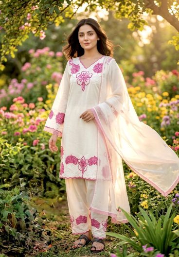 Natural crep with Breads work lace border Beautiful Salwar Kameez