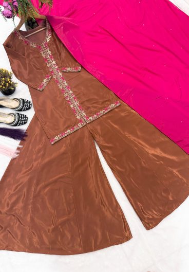 New Designer Party Wear Look Pure Glass Satin Top & Farshi Palazzo With Dupatta set