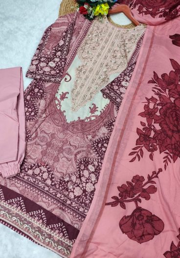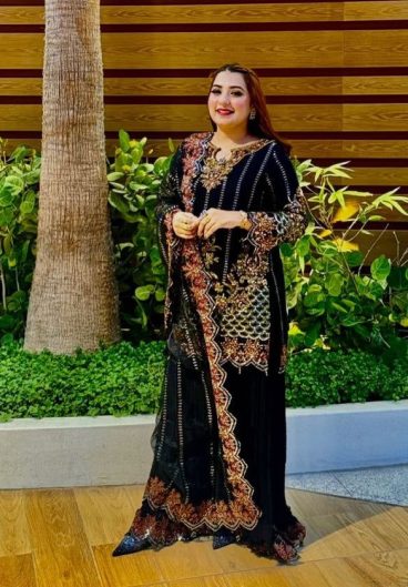 Premium French crep Embroidery Thread Detailing With Real Mirror Salwar Kameez