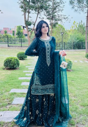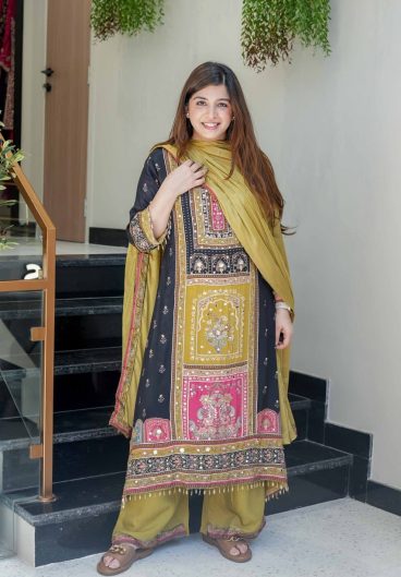 New Premium Embroidery And Sequence Worked Top-Bottom And Dupatta Set