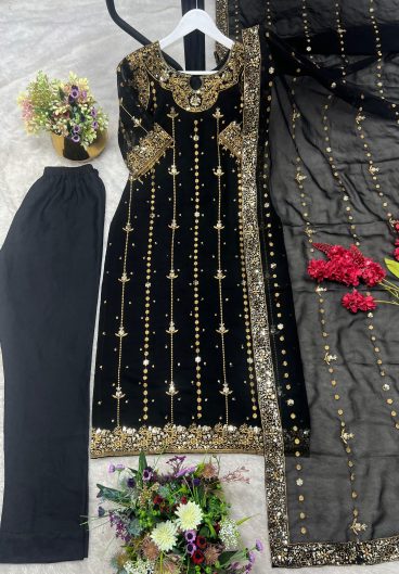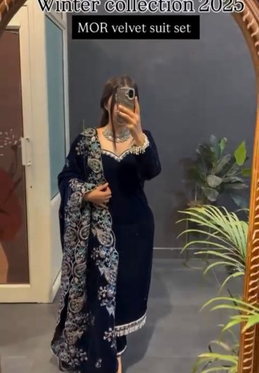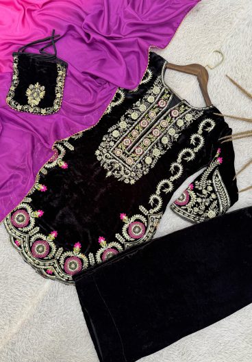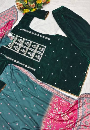 Pure Heavy Viscous Velvet With Heavy Embroidery Multi Needle Sequence Work Salwar Kameez