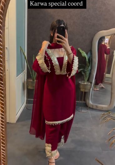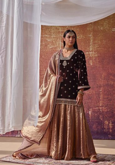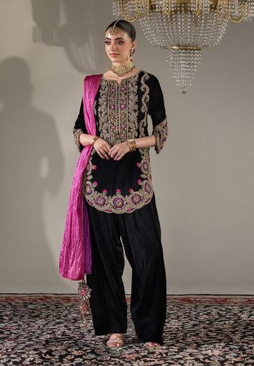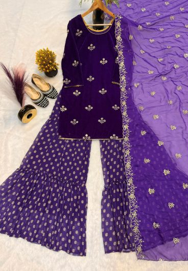 VELVET FOR THIS WINTER SEASON EXCLUSIVE 3 PIECE PLAZZO PAIR WITH EMBROIDERY WORK