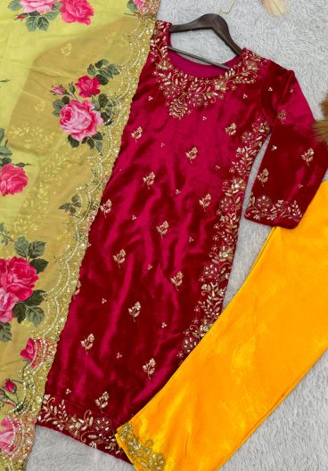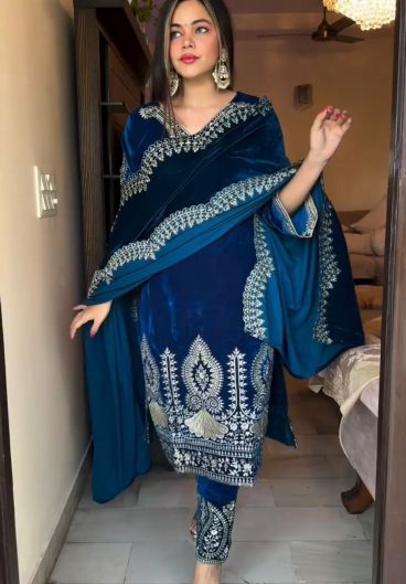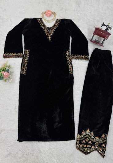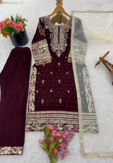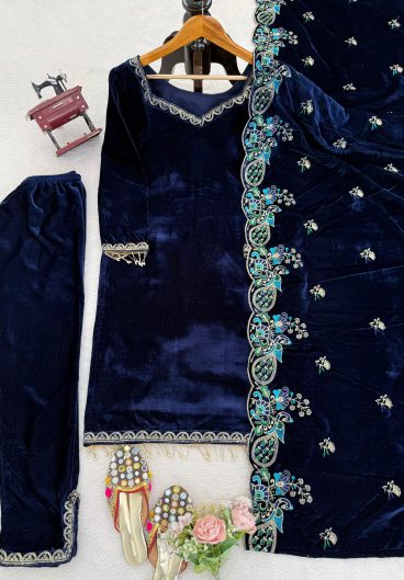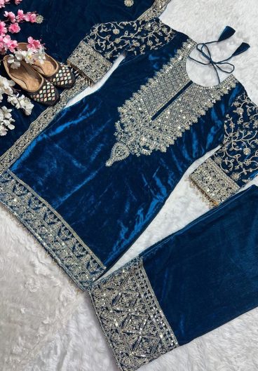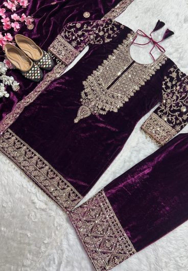 Pure Heavy Viscose Velvet With Heavy Embroidery Coding Sequence Work Salwar Kameez