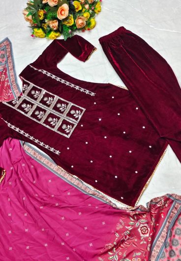 New Designer Party Wear Look Velvet Top-Dupatta and Fully Stitched Bottom