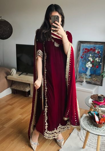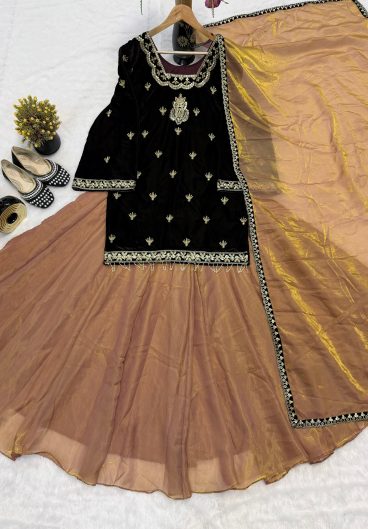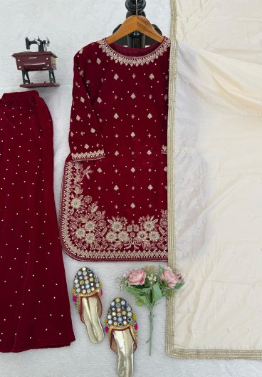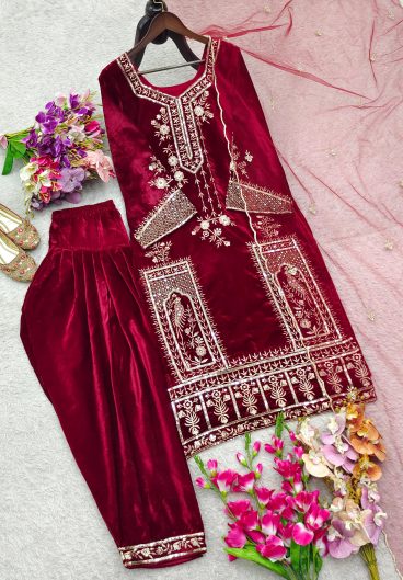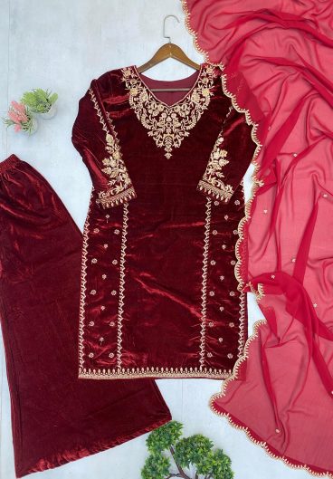 New Viscous Velvet Top-Farshi Salwar And Dupatta Set Fully Stitched