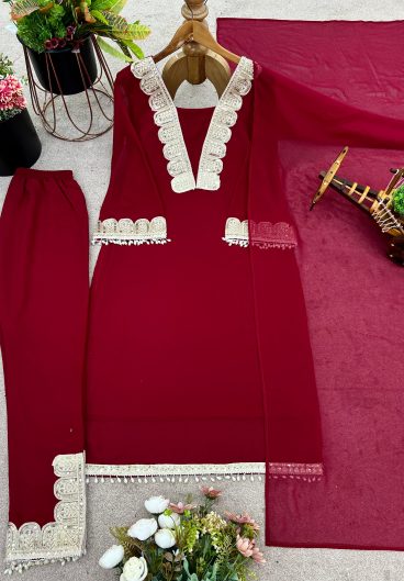 Faux Georgette with Soft Micro Cotton Lining & Handwork Work Salwar Kameez