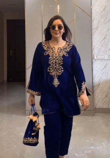 Viscos velvet thread with Sequence with Side pocket Top Pant Set