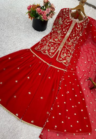 New Designer Party Wear Look Top-Plazzo and Dupatta With Heavy Embroidery Work