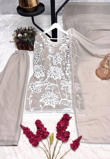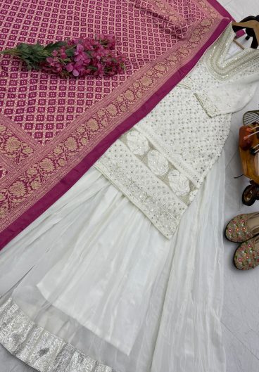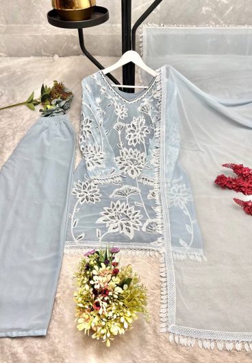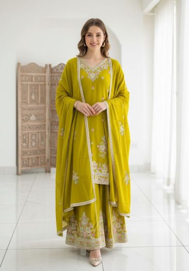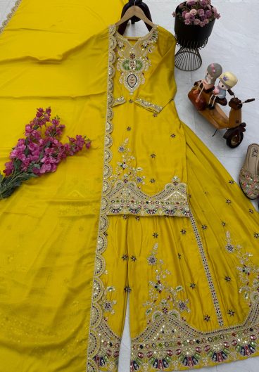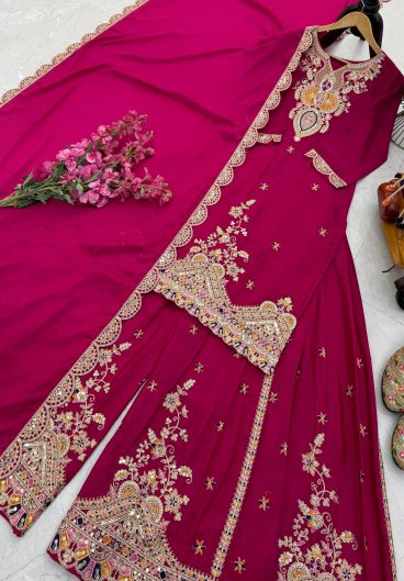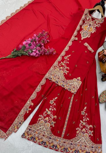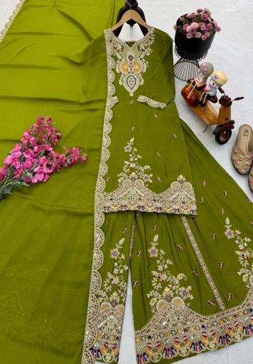 New Ready To Wear With Embroidery And Sequence Worked Top-Plazzo And Dupatta Set