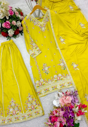 EXCLUSIVE 3 PIECE PLAZZO PAIR WITH DUPATTA IN SEQUENCE EMBROIDERY WORK