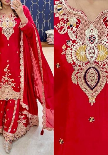 New Pure Chinon Top-Sarara and Dupatta Set Fully Stitched Ready To Wear