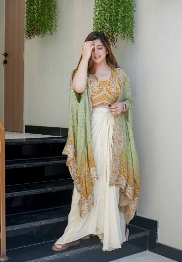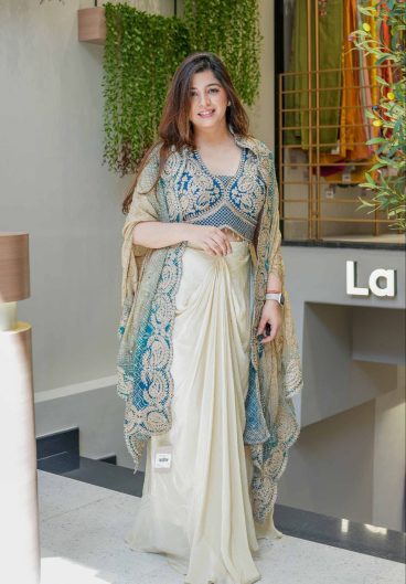 New Designer Indo-Western Draped Saree Set with Multi Thread Embroidery Coding Sequence work