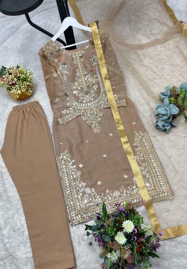 Ready to wear Chinon Silk with Embroidery Sequence Work Salwar Kameez