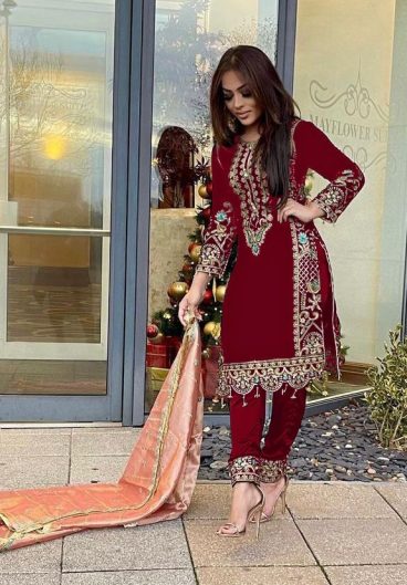 New Designer Party Wear Look Velvet Top-Dupatta and Fully Stitched Bottom