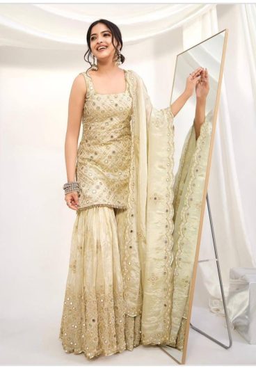 EXCLUSIVE 3 PIECE PLAZZO PAIR WITH DUPATTA IN EMBROIDERY AND REAL MIRROR WORK