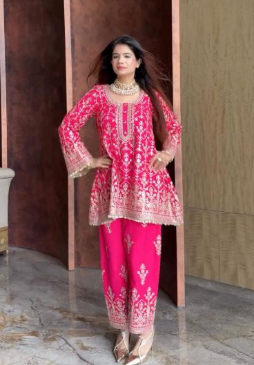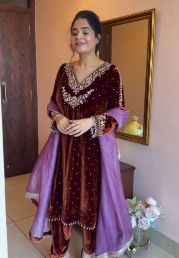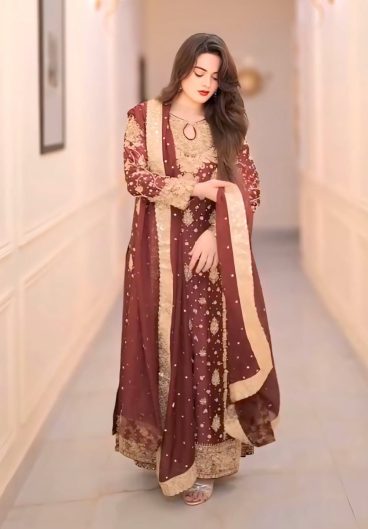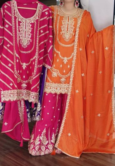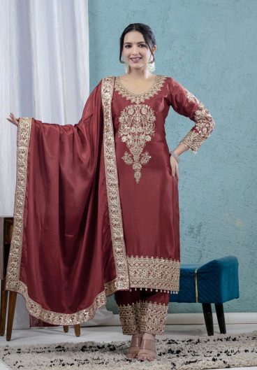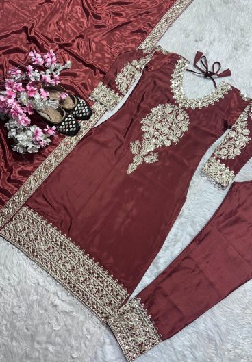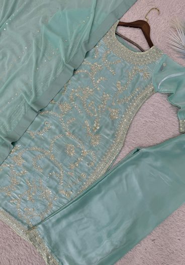 Pure Heavy Chinnon Silk With Heavy Embroidery Coding Sequence Work Salwar Kameez