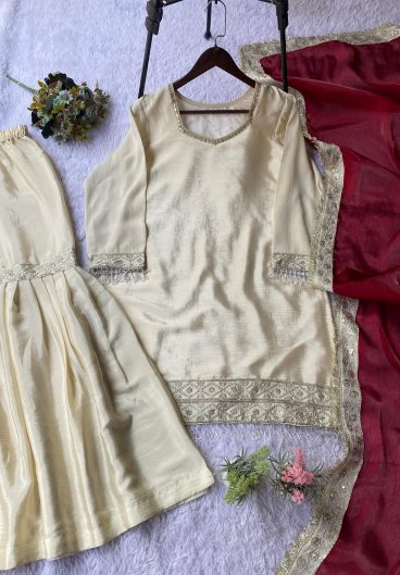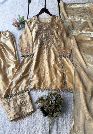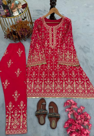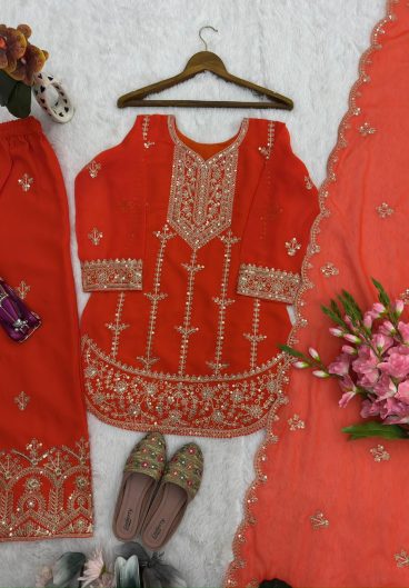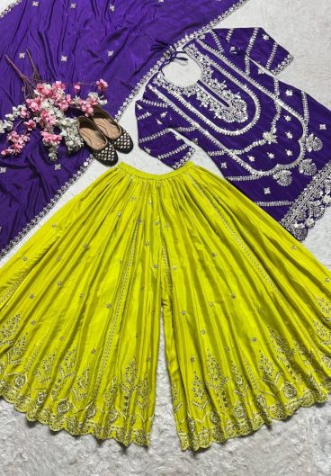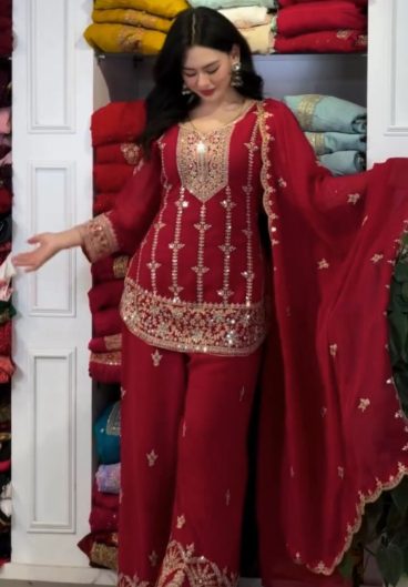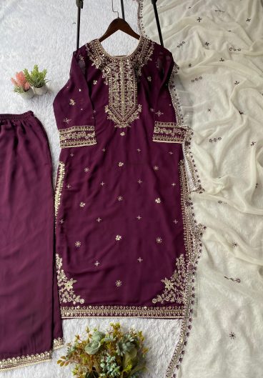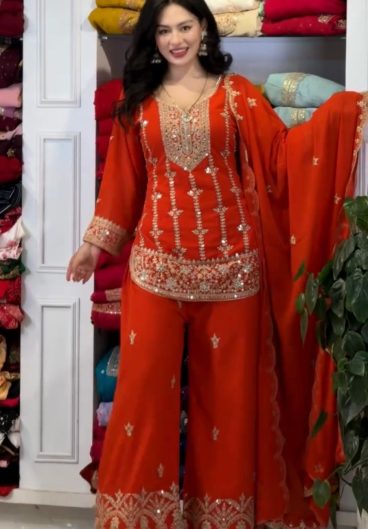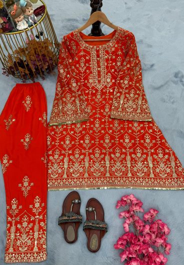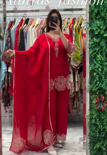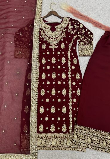 NEW READY TO WEAR SPECIAL FANCY DESIGN HEAVY EMBROIDERY AND SEQUENCE WORK TOP – PLAZZO WITH DUPATTA