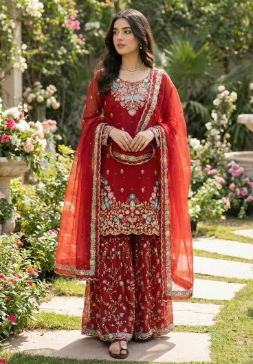 EXCLUSIVE AND TRENDY FOR WEDDING SEASON SEQUENCE EMBROIDERED TOP SARARA & DUPATTA