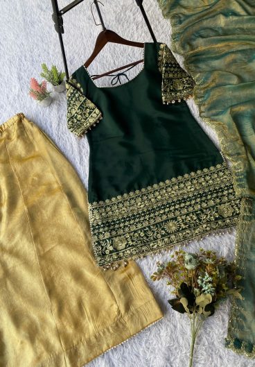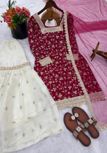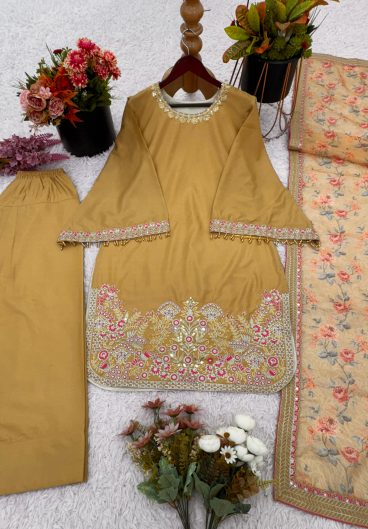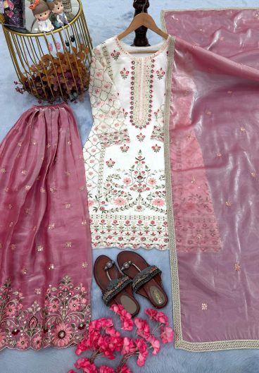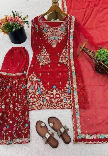 New GMY SILK With Heavy Embroidery Sequence Work Top-Bottom And Dupatta Set