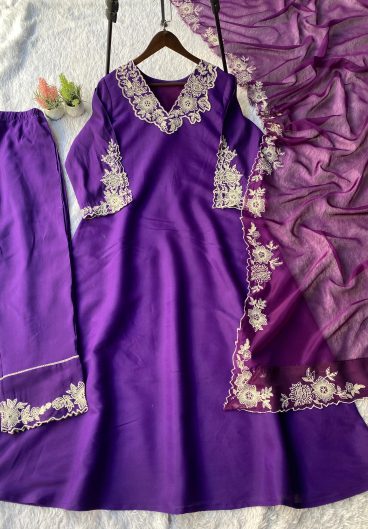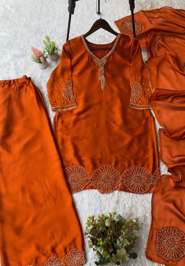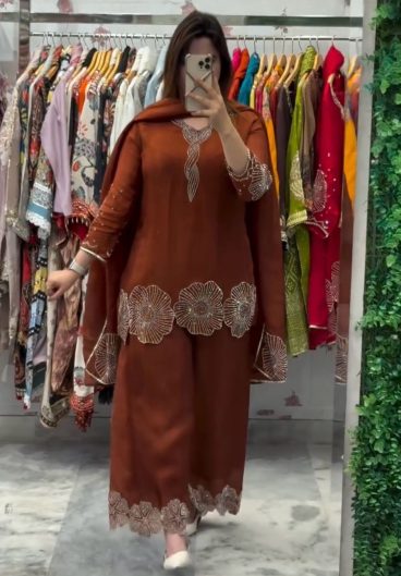 New Designer French Crep Silk Top-Bottom And Dupatta Set