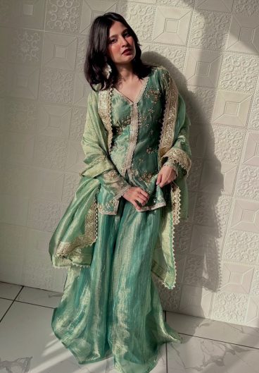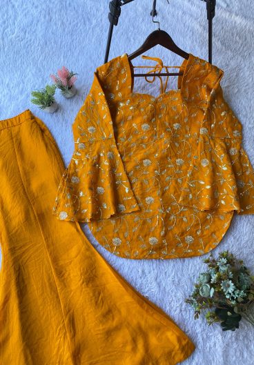 WEDDING SEASON 2 PIECE TOP AND PLAZZO IN SEQUENCE EMBROIDERY WORK